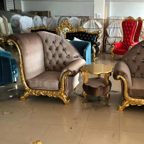 ロイヤルチェアキングアンドクイーンスローンゴールデンラグジュアリーウェディングデコレーション